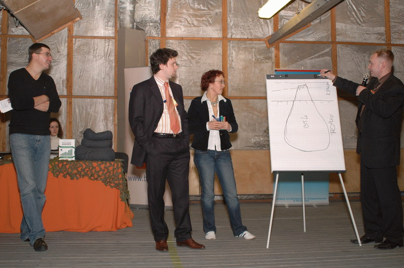 Ведущие эксперты российского маркетинга полностью приняли роли непримиримых противников и легко шли на обострение – на радость залу. Более сотни бойцов обеих армий активно поддерживали своих генералов и храбро вступали в битву, не щадя бумажных снарядов.